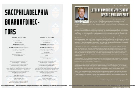 President of SACC-Philadelphia. In 2011, Bengt will continue to serve our Chamber as Vice Chairman of the