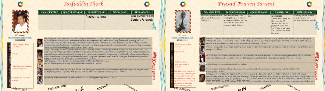 most talented person in our batch.. His confidence and way of thinking has made me respect him a lot - Sujeet