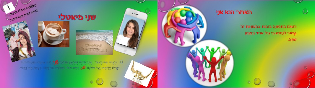 האחר הוא אני רואים בתמונה בובות צבעוניות זה קשור לנושא כי כל אחד בצבע שונה.