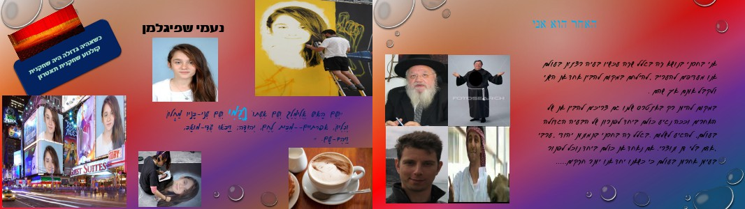 בעולם, להגיע לשלום .בגלל זה בחרתי בתמונות יהודי ,ערבי