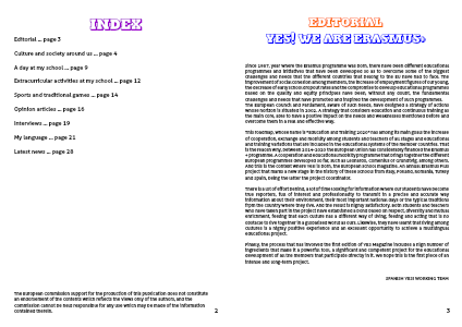 Finally, the process that has involved the first edition of YES Magazine includes a high number of ingredients that make it a powerful tool, a significant and competent project for the educational development of all the members that participate directly in it. We hope this is the first piece of an intense and long-term project.