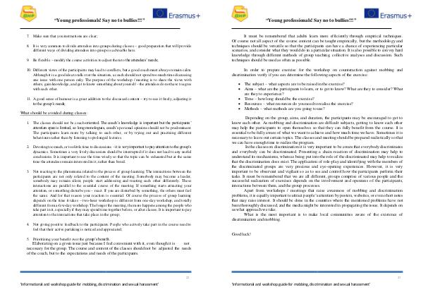 Apart from workshops / meetings that raise awareness of mobbing and discrimination problems, it is equally important to attract people’ s attention by posters, websites, or even short notes that may raise interest. It should be done in the countries where the mentioned problems have not been thoroughly discussed, and the media might be interested in propagating the issue. It depends on us what approach we take.