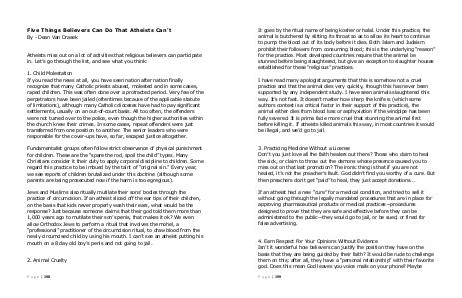 I have read many apologist arguments that this is somehow not a cruel practice and that the animal dies very quickly, though this has never been supported by any independent study. I have seen animals slaughtered this way. It’ s not fast. It doesn’ t matter how sharp the knife is( which some authors contest is a critical factor in their support of this practice), the animal either dies from blood loss or asphyxiation if the windpipe has been fully severed. It is prima facie more cruel that stunning the animal first before killing it. If atheists killed animals this way, in most countries it would be illegal, and we’ d go to jail.