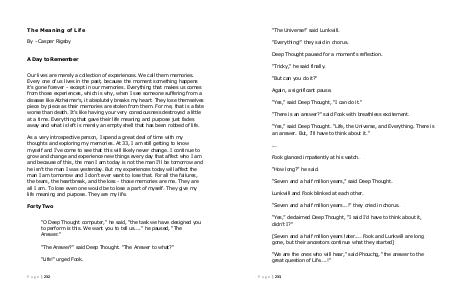 "Yes," said Deep Thought. "Life, the Universe, and Everything. There is