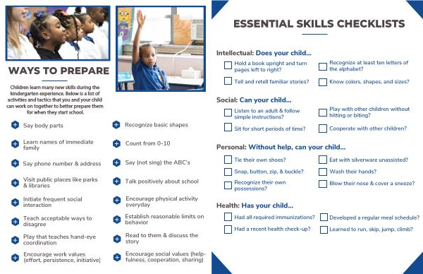 Children learn many new skills during the kindergarten experience . Below is a list of activities and tactics that you and your child can work on together to better prepare them for when they start school .
