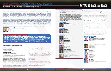 I would like to welcome you back to San Diego for the 2015 ICSC Western Conference & Deal Making. We're