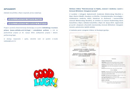 AKTUALNOSTI udjelovanja na skupovima Zakladinog e-‐sustava , a rok za U slu zaklada@uniri.hr -‐maila