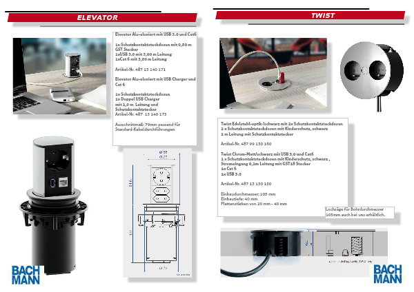Elevator Alu-eloxiert mit USB Charger und Cat 6