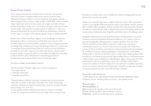 sam postojeću dokumentaciju prilagodila potrebama nastave Dramskoga odgoja.