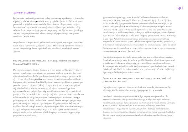 djece s emocionalnim poteškoćama. Autor u svojim igrama koristi lutku