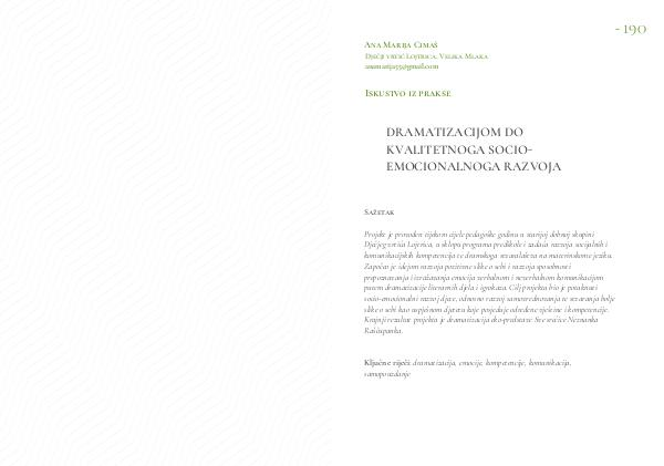 Ključne riječi: dramatizacija, emocije, kompetencije, komunikacija,