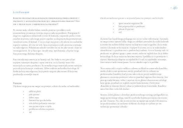 produktu u kazališnoj produkciji u obrazovnome procesu? Što