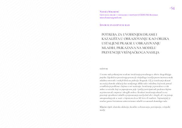 Ključne riječi: dramska edukacija, kazalište u obrazovanju, participacija, vršnjačko