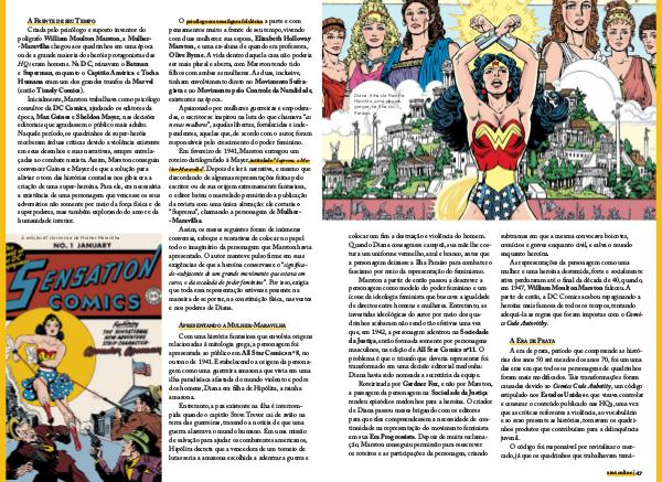 Assim, os meses seguintes foram de inúmeras conversas, esboços e tentativas de colocar no papel todo o imaginário da personagem que Marston havia apresentado. O autor manteve pulso firme em suas exigências de que a heroína conservasse o“ significado-subjacente de um grande movimento que estava em curso, o da escalada do poder feminino”. Por isso, exigia que toda essa representação estivesse presente na maneira de se portar, na constituição física, nas vestes e nos poderes de Diana.